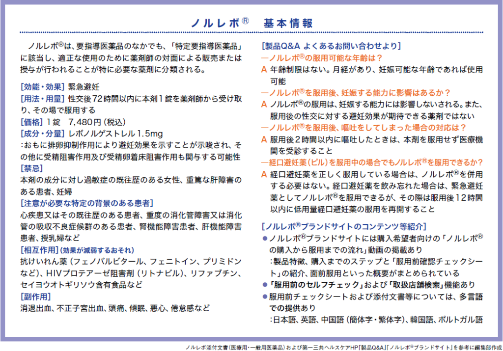 ノルレボⓇ発売により、薬局は薬の購入場所にとどまらず、地域の「ハブ」として産婦人科や支援機関と連携する役割を担う場として位置づけられている。薬剤師には、性に関する正確な情報提供と、それを踏まえ利用者が安心して相談できる対応が求められている。